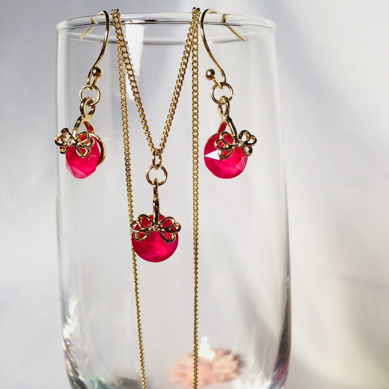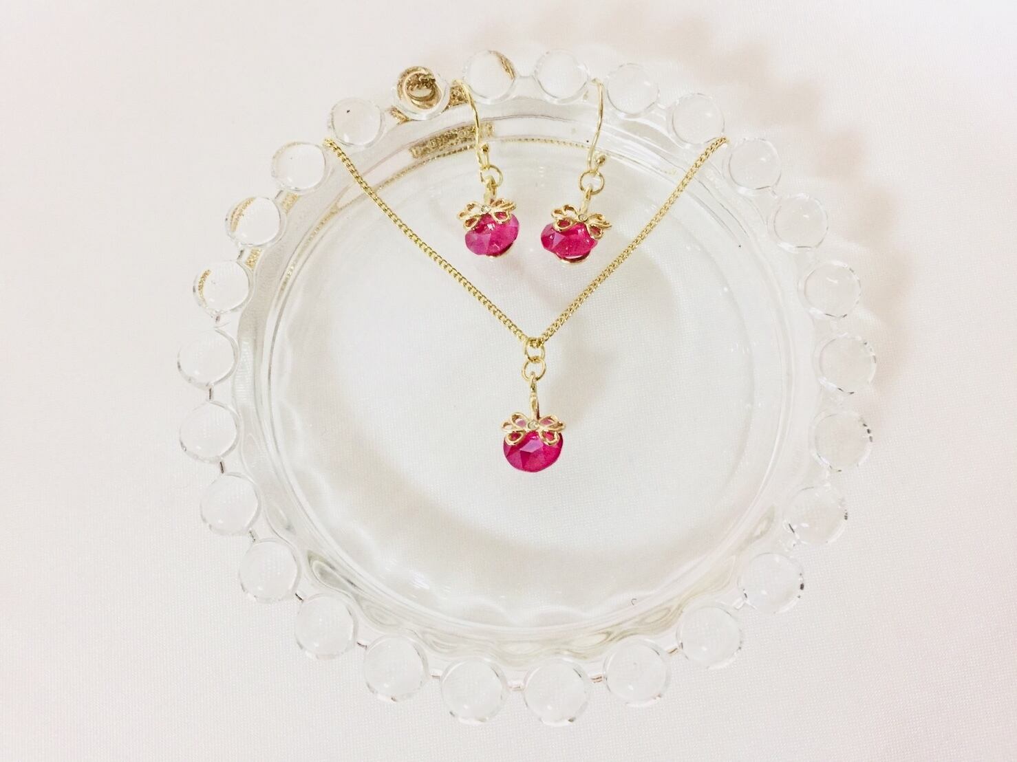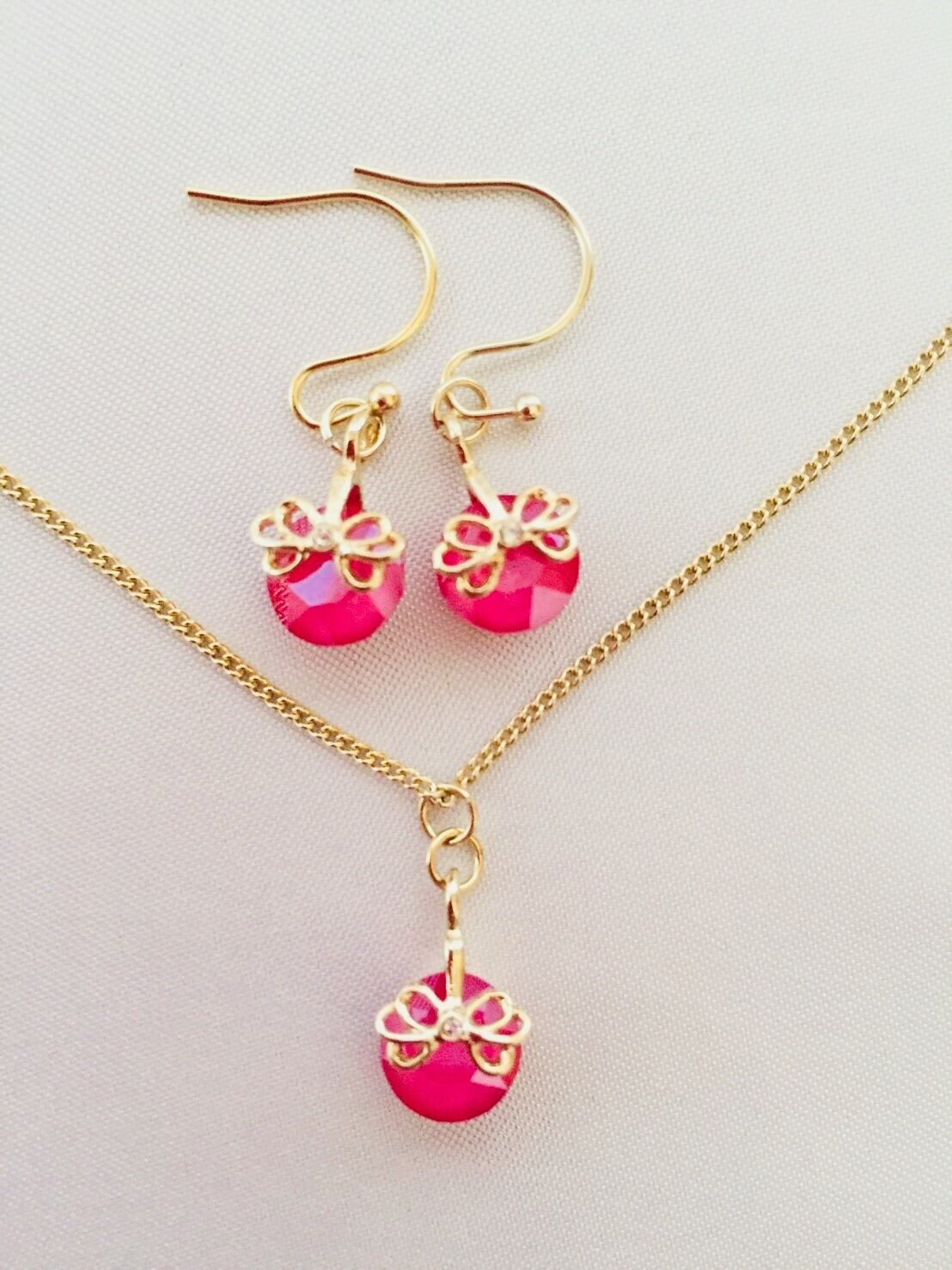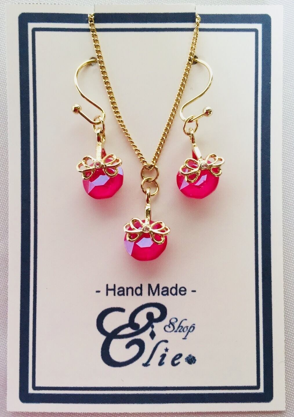 *スワロフスキーのピアス&ネックレスセット★リボン*