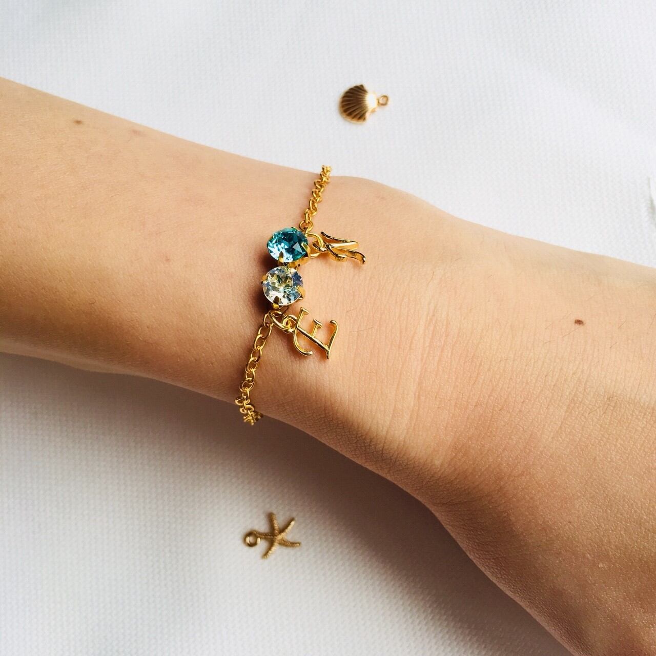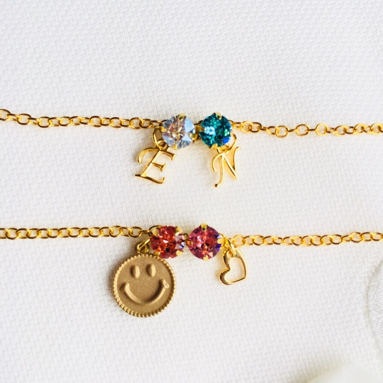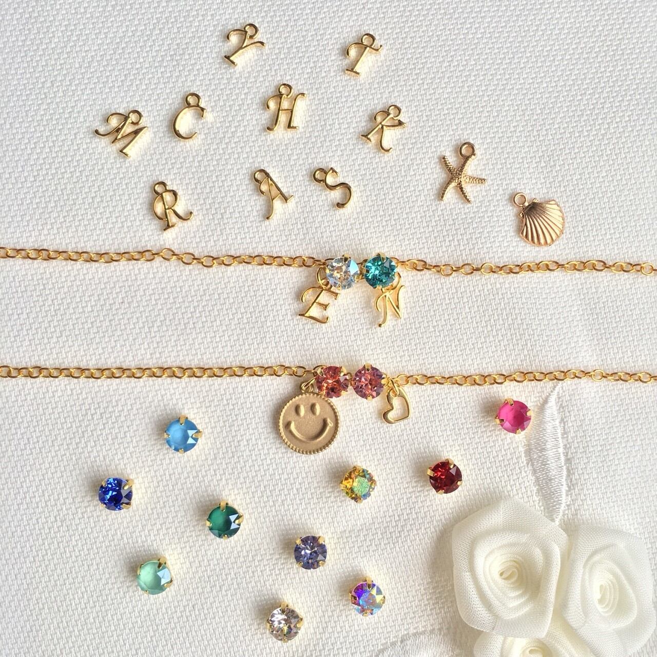 2色のスワロフスキーとイニシャルを組み合わせたブレスレットです